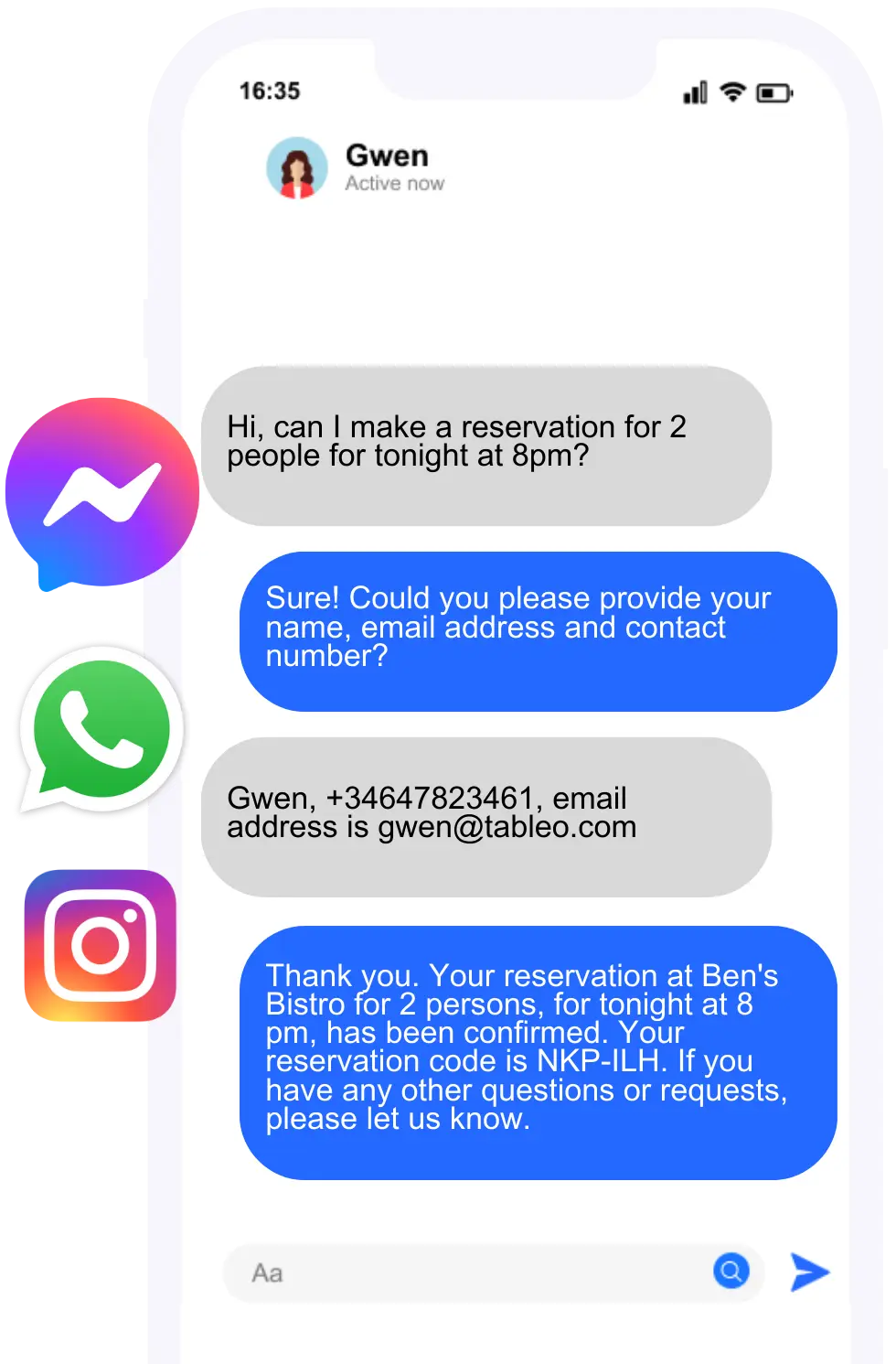 Are you tired of receiving the same messages daily, asking you about your opening hours or menu? Do people expect you to reply at 8pm to make a reservation when service is at its peak and the kitchen’s on fire? Are you losing customers because you can’t reply fast enough? If you’ve answered yes to any of the above, Tableo has the solution!