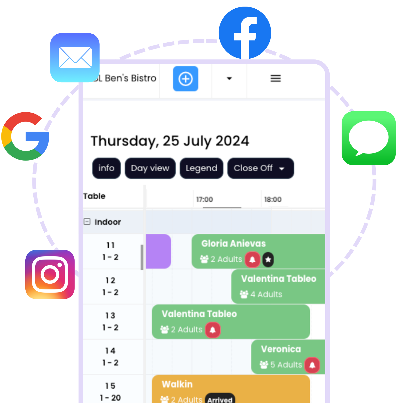 Mantente al tanto de tus reservas desde Facebook, Instagram y todos los demás canales, como Google, con una única plataforma unificada.