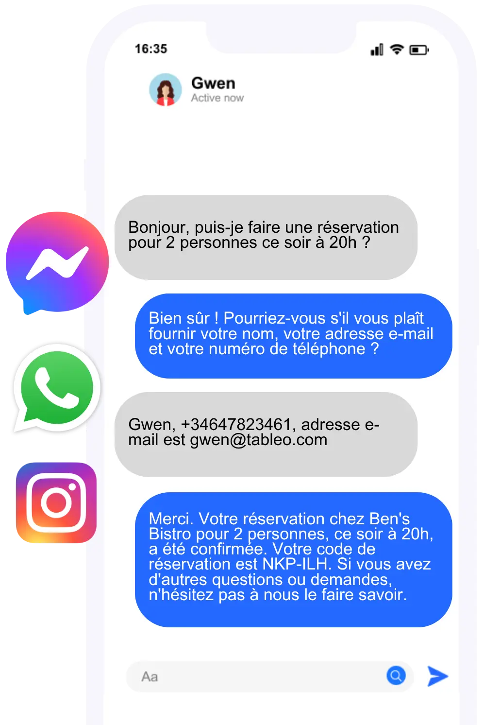 Les clients peuvent réserver et poser leurs questions via Facebook Messenger et Instagram.
