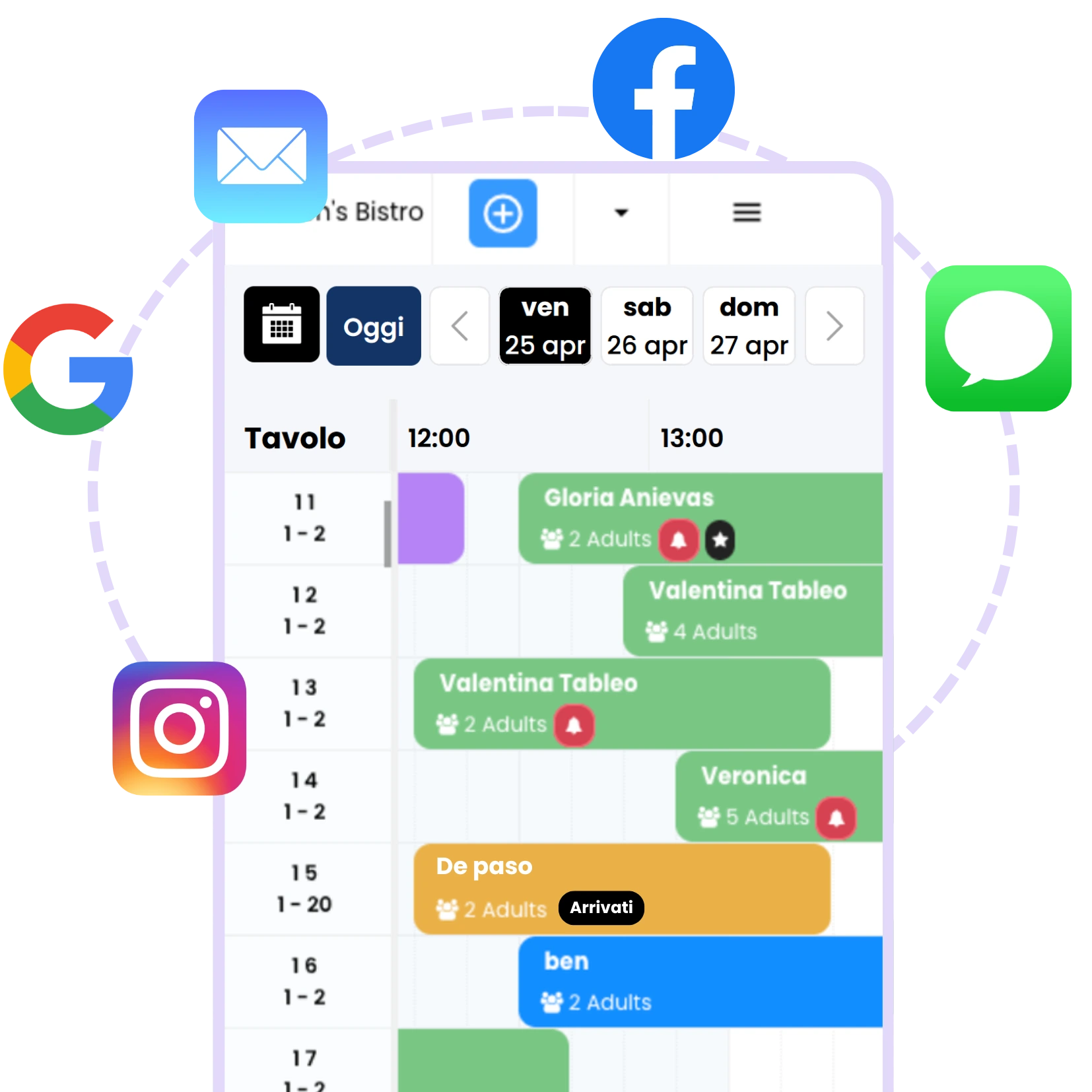 Tableo aumenta la visibilità su Google e rende più facile per i clienti effettuare una prenotazione diretta dal profilo Google Business del ristorante, da Facebook o Instagram. Inoltre, grazie agli insight e ai dati degli ospiti, puoi raggiungere i clienti esistenti con offerte e promozioni mirate. Potresti anche utilizzare le e-mail dei clienti per creare un pubblico di sosia in Google/Meta.