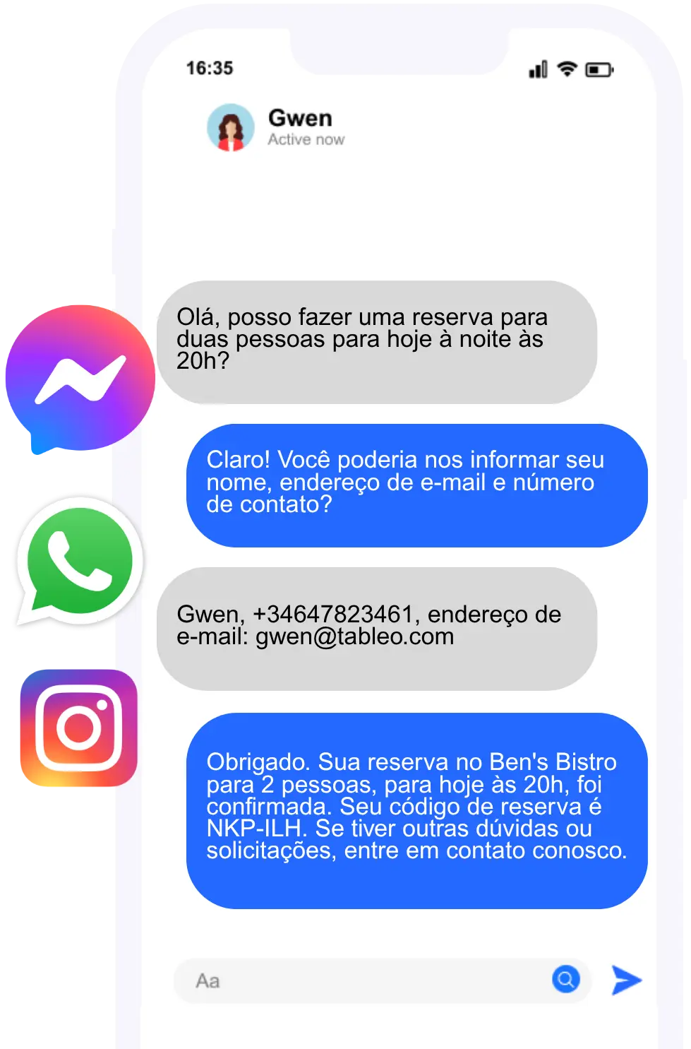 Você está cansado de receber as mesmas mensagens diariamente, perguntando sobre o horário de funcionamento ou o cardápio? As pessoas esperam que você responda às 20h para fazer uma reserva quando o serviço está no auge e a cozinha está pegando fogo? Você está perdendo clientes porque não consegue responder com rapidez suficiente? Se você respondeu sim a qualquer uma das perguntas acima, a Tableo tem a solução!